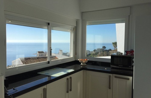 A newly renovated home is situated in the most exclusive urbanisation in Salobrena with stunning views of the Mediterranean from all terraces and most windows. It comes with a private infinity pool. It truly is an exceptional home built to enjoy the sunshine and all that the Costa Tropical has to offer. There are two dining terraces and one covered terrace to enjoy the view and shade when the Spanish sun is too much. Great for reading a book in the afternoon. Two of the bedrooms have ensuite facilities and the third twin bedroom has an allocated shower room. The kitchen is modern and has all the equipment you might need to enjoy your holiday, including Nespresso machine and a full size American style fridge freezer. There is a terrace just off the kitchen to enjoy breakfast and the views overlooking the infinity pool towards the sea. The evening dining terrace is equipped with two barbecues - a Weber charcoal and also a gas for convenience. The beautiful covered terrace has a sofa and two comfortable armchairs to enjoy. There is varied selection of books and games and also a smart tv.