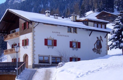 Pufels 6 km from St. Ulrich: Large 2-family house "Kostner". 6 km from the centre of St.Ulrich, 13 km from the centre of Santa Cristina Valgardena, 35 km from the centre of Bolzano, in a sunny position on a slope. For shared use: property. In the house: storage room for skis, washing machine (extra), ski boot dryer. Parking on the premises. Shop 6 km, indoor swimming pool 6.3 km. Mountain railway 6 km, ski lift 6 km, gondola lift 6.5 km, ski bus stop 50 m. Well-known ski regions can easily be reached: Seiser Alm, Seceda. Please note: the owner lives in the same residence.