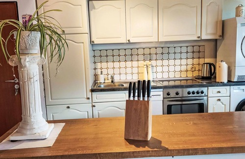 The 3-room semi-detached house has a total area of 100 square meters spread across two levels. On the ground floor, you will find a tastefully furnished living/dining room equipped with cable TV, a flat-screen TV, and a hi-fi system. Additionally, there is a large kitchen with modern appliances such as an oven, dishwasher, four ceramic glass hob hotplates, a toaster, kettle, microwave, freezer, and an electric coffee machine. The kitchen also features a dining table for your convenience. Upstairs, you will find one room with a double bed and another room with a single bed and a double bed. There is also an open gallery area with cable TV on the upper level.