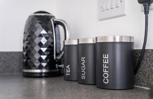 Fully stocked with utensils, cutlery, dishes, pots, pans, glasses, mugs. Includes microwave, gas hob, toaster, kettle, fridge freezer and washing machine. Tea, coffee, sugar available on arrival.