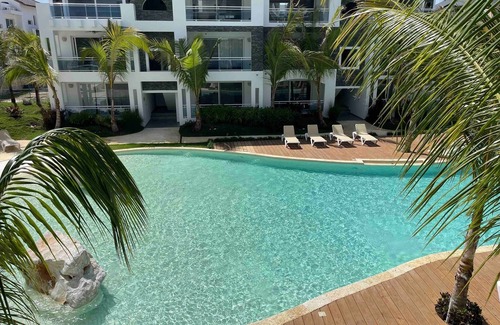Elegant and bright apartment on the second floor of a fabulous new residential complex with a beautiful view of the pool. Access to 3 spectacular saltwater pools. Located just a few steps from Dominicus Beach and the "heart" of Dominicus Village. Close to hotels and a variety of restaurants.