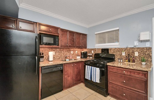 Unique gem in the heart of the city. In upscale River Oaks area. 10 minutes from downtown. 10 minutes from Upper Kirby. 10 minutes from midtown. Centrally located. Everything you need is here in this cute, quaint 1 bedroom loft style condo; private patio, washer dryer, Smart TVs, wifi, fully stocked kitchen with all amenities you need for an extended stay.