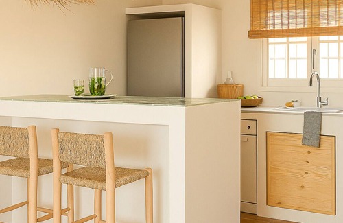 Open kitchen, finished with handmade tiles. The kitchen is well equipped with an oven, dishwasher, induction stove, fridge, freezer, microwave, Nespresso machine, milk frother, kettle.