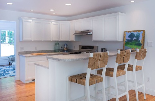 This just renovated, immaculate, spacious and stylish summer home two blocks from a beautiful bay beach and two blocks to Maidstone Park Beach features four bedrooms, four and a half bathrooms. Featuring four en-suite master bedrooms with wall mounted tvs and brand new beds and linens. Washer and dryer and fully equipped, modern gourmet kitchen. Peleton in the basement.