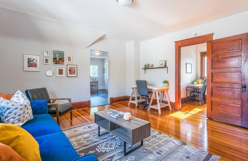 Stay in the heart of St. Paul's historic West 7th neighborhood in the stylish and updated upper level of a 1906 duplex. Enjoy the historic charm of the gorgeous original hardwood floors and the modern elegance of a recently renovated kitchen and bathroom, all while being centrally located in the Twin Cities area. You'll be minutes from MSP airport, the Xcel Center, downtown Saint Paul, United Hospital, CHS Field, Keg & Case, and all the other attractions in the West 7th neighborhood.