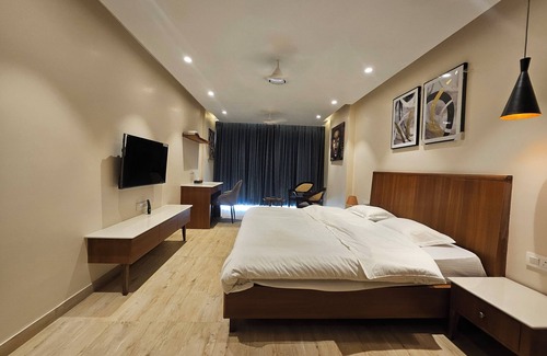 Your Jaipur adventure begins at this amazing studio. This adorable property features a cozy king bed, AC, WiFi, and a fitness room. Guests can freshen up in the bathroom with a hairdryer and shower. Enjoy your time in Jaipur at our charming studio.
