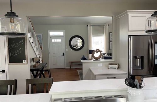 Comfortable single family home in quiet neighborhood, new updated beautiful kitchen with 11 foot Island and 36" range in the Island. Open family room with large 82" TV with Netflix, Prime and more. TV's in all bedrooms. Master bedroom on first floor. Large deck with gas grill and large yard with outdoor shower off deck.