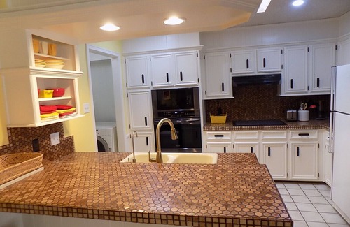 Come stay in this nice neighborhood and enjoy the sunny, private veranda, two big isolated bedrooms with a king bed, a queen bed, two full size beds and two comfy sofas. Three TV's including a 58-inch Samsung, a 55-inch Samsung and a third Roku streaming TV. High speed internet, gas fire logs, new RO water system, two step-in showers and a big garden sunken soaking tub.