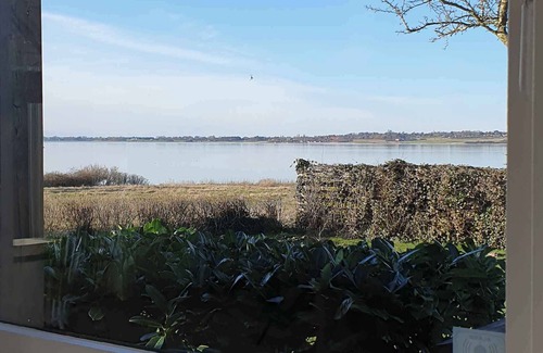 Life is best when you enjoy the sun from the 78 m2 partly covered wooden terrace where you can always find shelter, privacy - and of course, sea view. Or enjoy a meal indoors at the large dining table and relax in one of the house's cozy nooks whilst you always having an eye on the lovely view over the water to Bogø and Møn.