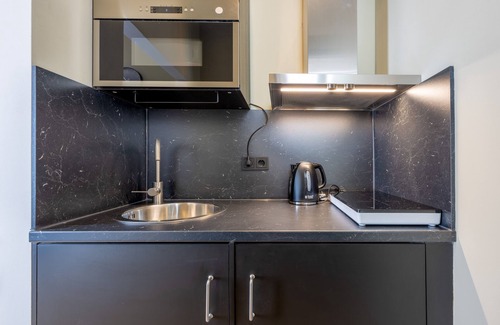 As you settle into the place, you'll find a living room and a desk. Enjoy the free WiFi and TV. Bathroom amenities include a hair dryer, towels, and toilet paper. The kitchen is equipped with a stovetop and a refrigerator, as well as a coffee maker, an electric kettle, and a microwave. Other amenities include bed sheets, heating, and a desk chair.