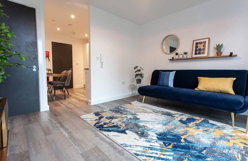 This bright and spacious 2 bedroom apartment is set within a modern development in the Old Trafford area of Manchester, just 5 minutes walk from Old Trafford stadium. The modern interior is beautifully finished, featuring floor to ceiling windows, elegant furnishings and all the amenities you need for a comfortable stay in the city. The property sleeps up to 5 guests with use of the sofa bed.