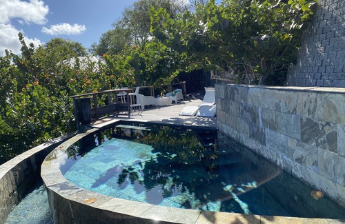 This little love nest benefits from a natural Zera Green stone swimming pool, access to the sea and a private pontoon.