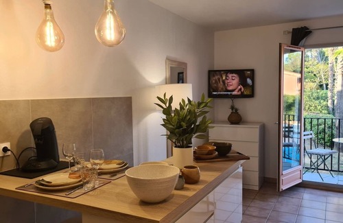 Superb golf-front studio with swimming pool is located in Mouans-Sartoux. Superb golf-front studio with swimming pool provides accommodation, featuring Air Conditioner, Parking, Fireplace/Heating, among other amenities. This Apartment features Air Conditioner, Parking, Fireplace/Heating, to make your stay a comfortable one.