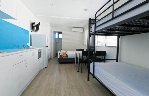 This studio style cabin has a Double Queen Bed Single Bunks with a kitchenette and basic cooking utensils to cook those basic meals or if you dont feel like cooking no problem, some of the best cafs and restaurants are only a stone throw away.