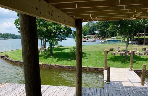 On beautiful Lake Martin (Equality, Alabama) Panoramic lake views on a level lot- the floor level of this lake house is about 2 feet above the water level at full pool. This location defines being 'ON THE LAKE'. 640 ft. of shoreline contours evenly from a depth of about 30 inches at the seawall gently sloping away for FUN & SAFE swimming for all ages. Must be 35 years of age to rent.