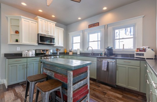 This is a beautiful charming 1911 bungalow with modern amenities, 3 bedrooms, 2 baths, and a pool. There is a downstairs unit, so please be kind and mindful of potential noise for the tenants downstairs. There is a beautiful backyard with a salt water pool. The space is about 1,800 square feet, with historic charm, an upgraded, fully stocked kitchen with quartz countertops, stainless steel appliances, Keurig coffee maker, and stainless steel cookware. 200 restaurants within 1 SQ mile!! On Saturday morning, walk to the Farmer's Market to get fruits and veggies for your gourmet dinner. Go out and explore the vibrant nightlife. Harlow's is nearby for a night of great music and memories. Central heating and air controlled by Nest thermostat. Street parking. Our home is secured with a locking gate and passcode access. Easy entry with provided codes, so check in is a breeze! No more frustrating check-ins and no chores before checkout.
