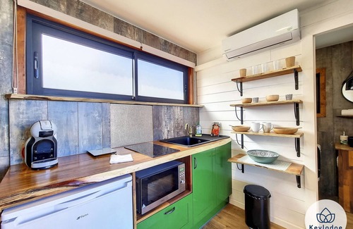 ✅ A fully equipped American kitchen designed for your stay, with all crockery and kitchen utensils, toaster, kettle, coffee maker, microwave, and a mini fridge.