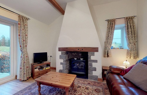 Swn Yr Aber is a converted barn located in the midst of rural farmland and close to a nearby stream. It is located on the outskirts of the small village of Nebo, near Llanrwst, and only 3 miles away from Betws Y Coed, making it a perfect starting point for couples and families who want to explore Snowdonia, Conwy Valley and the coast. Set out over a single floor, the cottage has two bedrooms allowing it to sleep up to 4 people, as well as an additional infant in the provided cot. There is a family bathroom, additional WC, and a spacious kitchen-diner. The main lounge has an electric log-effect fire and French doors open onto a patio. Facilities at the cottage include a dishwasher, washer-dryer, microwave, freezer, TVs and DVD players in both bedrooms and the lounge, a whirlpool bath with an overhead shower to soothe away the day's activities. Outside there is garden furniture allowing you to take in the spectacular views on sunny days. Bed linen and towels are supplied, and the property allows one well-behaved dog to stay at no additional charge. Located on the eastern edge of Eryri (Snowdonia) National Park, Swn yr Aber is a beautiful cottage that offers easy access to all main centres of North Wales. The area is perfect for leisurely walks and exploring the Welsh countryside, with a nearby stream and access to the surrounding farmland. The cottage itself is a top-quality barn conversion, and visitors can expect to spot local birdlife such as Buzzards and Lapwings. Llanrwst is a market town and community on the A470 road and the River Conwy, in Conwy County Borough, Wales, and the historic county of Denbighshire. It developed round the wool trade and became known also for the making of harps and clocks.