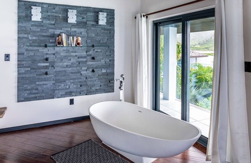 Ocean Blue is a beautiful oceanfront oasis located in the heart of the Caribbean, boasting three spacious bedrooms and spectacular sea views. Situated on the southwest coastline of the island of Antigua, the villa is part of the Tamarind Hills boutique collection of villas and suites, affording exclusive access to the resort’s fantastic facilities. Thoughtfully designed with the laidback Caribbean lifestyle in mind, Ocean Blue's understated décor echoes the natural beauty of the surrounding island. There is a peaceful terrace that wraps around the ground floor, where you can spend your mornings relaxing in the infinity-edged swimming pool, with the warm Caribbean breeze, the lush greenery of the garden and the sea’s gently lapping waves instilling a sense of peace and tranquility.The terrace also features sun loungers and umbrellas, as well as a covered seating area, the perfect place to relax with a good book for the afternoon. A charming gazebo overlooking the sparkling turquoise water is made for a cocktail at sunset, while the barbecue grill and outdoor dining area provides guests with the ideal space to prepare a memorable meal at home. Glass walls lead into the villa’s large open plan living space, featuring a stylish lounge area where the whole family can relax in comfort after a day spent exploring the wonders of the island. This area flows seamlessly into the villa’s modern, well-appointed kitchen, fitted with a wide breakfast bar. The lovely dining area adjacent to the kitchen allows for a romantic dinner with a view. There is also a media entertainment room leading off from the main living space.On the first floor, Ocean Blue boasts three oceanfront bedrooms, each furnished with a king-size bed and featuring contemporary décor. The master suite features a large private balcony with stunning panoramic vistas. Each of the bedrooms also provides guests with a modern en-suite bathroom, complete with a walk-in rain shower.Air conditioning is featured throughout Ocean Blue, with fitted ceiling fans also in place, ensuring that your nights are as cool and restful as your days are sunny and rejuvenating. The villa has direct boardwalk access to both Darkwood Beach and Ffryes Beach, two of Antigua’s most iconic beauty spots. Visitors will be struck time and time again by the pristine waters and silken white sands of the island’s coastline, with its picturesque backdrop of lush green hills.