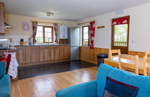 Tarka’s Holt Log Cabin is detached lodge housing an open-plan living space with kitchen, dining and sitting area. Appliances include an electric oven and gas hob, microwave, fridge/freezer, washing machine, tumble dryer and dishwasher, TV with Freeview, DVD player. The bedrooms include a double with en-suite shower, a twin and a single, served by a bathroom. Outside there is a private veranda with furniture and hot tub, shared lawns with furniture, children’s play area and football nets, a shared indoor swimming pool and off-road parking for two cars. Within 3.8 miles there is a shop and within 2.5 miles there is a pub, and please note, this lodge does not accept pets or smoking. WiFi, fuel, power, bed linen and towels are all included in the price. A travel cot and highchair are also available. Expect a wonderful break at Tarka’s Holt Log Cabin. Note: The pool is 7m x 3m. Note: No stag/hen parties or similar. Note: Small charge for use of washing machine. Note: Owner is happy to escort younger children to feed hens and rescue horses.