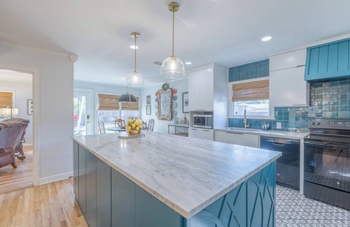 The layout of this home is perfect for families, business travelers, and two couples traveling together. The split floor plan of this home ensures guests in both bedrooms have optimal space and privacy. Both bedrooms feature charming original hardwood floors, locally-inspired decor with essential furniture, and large windows that allow for plenty of natural light.