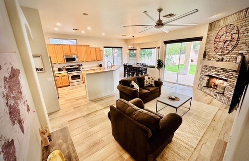 We had an amazing weekend in Tempe! The house was easy to find in a quiet, peaceful neighborhood about 25 minutes to the AZ airport. The hosts thought of everything—charging cords by the bed, bottled water on the nightstands, hair dryers, full size shower products, and a fully stocked kitchen with spices, oil, and more than enough coffee for our stay. The beds were super comfortable, linens were crisp and clean, there were plenty of towels and even extra toilet paper. The backyard was the real highlight—absolutely stunning! The pool was sparkling and inviting, the hot tub was perfect, and the outdoor space had a grill, sun chairs, couch, pool floats, and even a fireplace (though we didn’t use it). Everything was clean, cozy, and set up for total relaxation. We had a wonderful time and felt right at home. 10/10 recommend and would absolutely stay again. Do yourself a favor and book this house—you won’t regret it!” – Stacy, 2025