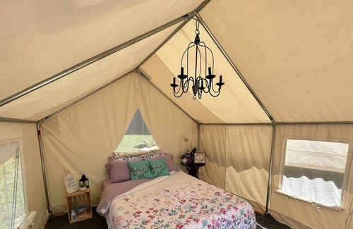 Pet Fee: $15 per stay, payable directly to the host at check-in. Bring your furry friend to enjoy this site! Just make sure to pick up after them. Maximum of 2 dogs/pets per unit. Dogs must always be on a leash when outside. Dogs are not to be left in the tents unattended. Please clean up after your pets to avoid a cleaning fee. Pet waste bags will be provided.