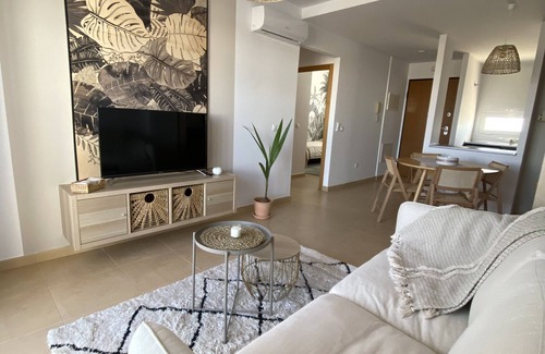 Close to water skiing, cycling, and more, this family-friendly apartment brings it all within reach. Thanks to the convenient onsite parking, you can either leave your vehicle behind and let your feet make short work of the 7-minute walk to Saurines de la Torre Golf Resort, or easily tackle the 22-minute drive to Mar Menor Golf.