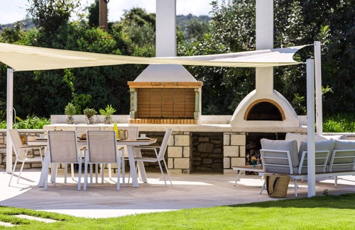 Thalmargia Villa II is perfect for al fresco dining on a summer's eve. BBQ facilities are available outdoors, as well as a dining area under a shaded pergola! There's even a traditional oven to put aMediterraneanspin on romantic lunches and BBQs. Set in 640m2 outdoor area with a private 36m2 swimming pool and a 460 m2 lawn covered area, this Villa will invite you to enjoy the pleasures of summer, under the clear blue sky!