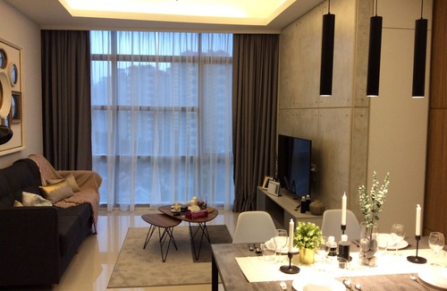 Two bedroom stylish designer Service apartment with one king size bed en-suite , smart Tv and guest room with queen size bed. complimentary High speed Internet 300mbps. 55 inches smart TV with Netflix , Full kitchen with Gas Hob, full height refrigerator and built in Oven. Recreation area with infinity pool, jacuzzi, steam room and gymnasium. the apartment is attached to mall and New world hotel.