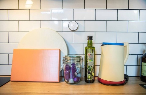 The space offers a combined living room and dining area with a full kitchen. Here, you will find all the amenities you need to cook your own meals. You can enjoy a shared dinner around the dining table or kick back and relax in the lounge area, which also features a large TV with complimentary Netflix.
