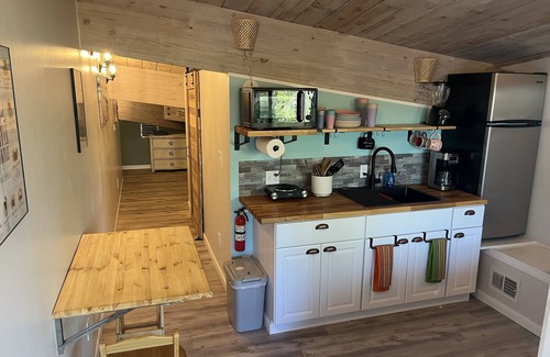 Enjoy the 2nd story private deck, fire pit, bbq and studio/1 bedroom & area for a 3rd person with a memory foam mattress.