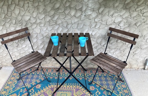 Inside, you’ll discover a new mattress for restful nights, a spacious work area complete with an adjustable standing desk, highly reliable Wi-Fi, and a TV equipped with an Amazon Firestick. Sip on free organic coffee or tea and enjoy pristine well water. The kitchenette features a microwave, toaster, and fridge for your convenience. We also have a hot plate with pots and pans as well as a brand-new crockpot.