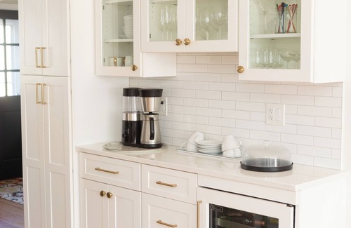 Stunning kitchen complete with counter-to-ceiling subway tile and open concept dining area. The foodie in the group will have post, pans, glasses to serve brunch, make beach lunches and eat those lobsters. Deep porcelain sink, coffee bar and imported wine fridge are the owners favorite features.