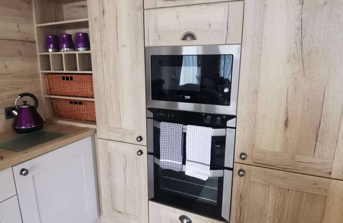 We are perfectly positioned for easy reach to explore the Cotswolds and surrounding areas. The space This is a luxury home with a full kitchen including, Oven/Hob, Fridge, Freezer, Washing Machine, and Dishwasher. TV with DVD player in the lounge and TVs in 2 bedrooms. Music can be streamed using built-in Bluetooth speakers. Table and chairs inside for a cozy family meal. There are 3 bedrooms - one with a King bed and plenty of storage space. The other 2 bedrooms each have 2 single beds. All bedrooms have ample storage space. Maximum capacity 6 people There is a family shower room as well as a separate toilet and washbasin room. Outside there is a table and chairs on the decking.