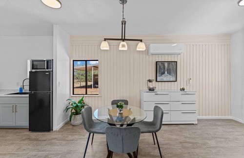 With 1 cozy studio bedroom and a pullout couch, there is enough room for everyone to relax and unwind. Enjoy this tranquil setting for an outdoor gathering with family or simply soaking up the sunshine. Comfortably sleeping 3-4, this is the ideal spot for your next vacation. Multiple properties are available on site to book/reserve, please message the host to see if it's available for your stay. Although you will feel like you aren't in the desert with the mature trees and greenery, be cautious of wildlife. It may be pretty but not always friendly. If you see a snake or any other animal please dial 911 watch it from a safe distance and do not touch.
