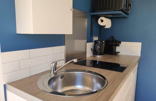 The cabin at the bottom of the garden - 5 minutes walk from the beach is located in Saint-Malo. The cabin at the bottom of the garden - 5 minutes walk from the beach provides accommodation, featuring Kitchen, TV, View, among other amenities. This Cabin features Kitchen, TV, View, to make your stay a comfortable one.