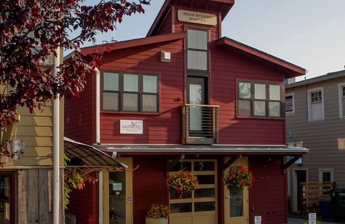 Gaze at this stunning view down from a brand new condo perched right on the shore! The Captain's Suite is one of four guests apartments in the Main Street Station, designed to complement beloved historic structures of Eastsound. This is our premium unit, one bedroom with a queen bed, pull-out sofa, fully equipped compact kitchen, barbeque, porch just steps from the water, and nearby stairs to the gorgeous rocky beach. 500 square feet architecturally crafted with attention to every detail, and all new furnishings in coastal, organic style we call 'beachy elegance.' The rooms highlight natural textures and products from local artisans. This unit is on the main floor for easy access, and includes a washer and dryer for your personal use. In Eastsound Village you will find all you need -- the farmer's market, bookstore, kayak rentals, bicycles, grocery, natural foods, boutiques, gift shops, and more. In fact, you don't even have to bring a car! Skip the ferry lines and pack light, take a shuttle or taxi to Eastsound, and the rest of your trip is easy. Feel free to ask us for any other special details you may desire for your get-away. Simply the perfect spot for your Orcas Island adventure! (See VRBO listings 419265, 420673 and 420677 for more options and group possibilities). Please note that we thoroughly disinfect our units between guests.