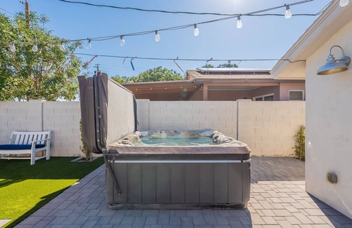 We are new owners of a well known vacation rental steps away from Downtown Gilbert and cannot wait to share our incredibly cozy place. Fully equip kitchen, comfortable new furniture throughout, plush throw blankets, full size washer/dryer, clothing steamer, Roku TV with streaming capabilities, and 5G internet. For those who like to travel a little lighter, we've included a hair dryer, shampoo, conditioner and body wash in each bathroom. Charming backyard features string lit patio with table and chairs, hot tub and a view of the Gilbert Water Tower. Parking available for up to 2 vehicles. One compact spot available inside the RV gate entrance and another curbside in front of the home.