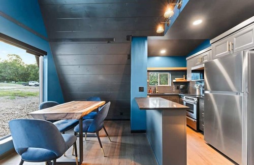 Welcome to a vibrant and romantic retreat overlooking the Ozark Mountains. One of four luxury A Frames located within the Constellations at Table Rock Lake, a 6 acre couples only development located near Cricket Creek Marina, Big Cedar Lodge, Thunder Ridge Amphitheater and everything else that the Branson area has to offer. This cabin features high end custom finishes, color changing accent lights, an elevated lounge area with swinging chairs overlooking the woods and a steam shower for two. Soak in the private hot tub or lay out on the built in deck hammock while you page through a good book or gaze at the stars. Located only 20 minutes from the Branson strip, we are far enough from the city lights to be able to enjoy the constellations at night while being close to the action during the day. Blazing fast Wifi and a fully equipped kitchen for those who would prefer a home cooked meal while streaming their favorite shows. With an outdoor firepit, charcoal grills, walking paths and indoor heated pool (to be completed in September), you've just found the perfect place to reconnect surrounded by the beauty of the Ozarks. Welcome to the Constellations at Table Rock Lake.