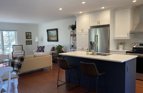 The lovely space offers privacy for guests. There is a patio for guests to relax and enjoy the views of pines and fields. The newly renovated interior is perfect for a short stay, but also equipped with the necessary amenities for an extended stay.