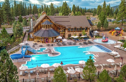 Family Pool: Open seasonally from Memorial Day to early October, the large, heated family pool features the only outdoor waterslide in Truckee, a splash pad for the littles, and is surrounded by lounge chairs, poolside sofas, dining tables, and firepits for ultimate relaxation.