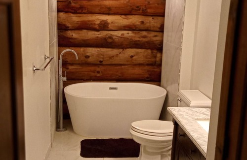 This 3-bedroom cozy cabin is perfect for your escape to the Pocono Mountains. Nestled in a serene setting, this delightful property offers a soothing ambiance that will instantly put guests at ease. Featuring 2 queen beds, a queen sofa bed, and 1 twin bed, it comfortably accommodates a group of friends or a family. The cozy cabin features a gorgeous living room with wood burning fireplace a cozy sofa bed. Luxe linens/shampoo/body wash/hairdryer. Guests can unwind in the bathtub or enjoy the convenience of amenities like heating, WiFi, washer/dryer. Our place is equipped for both long and short stays to make your holiday one to remember. Complimentary coffee tea snacks.