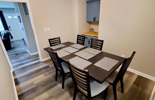 While this home is equipped to host 8 people, 10+ guests can fit comfortably within this 1500sqft home. Two of the rooms have king size beds while the other two bedrooms have queen mattresses. No drawing straws for beds as the La-Z-boy Queen sleeper sofa in the living room is very comfortable as well! Totaling 5 beds available.
