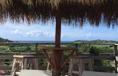 Villa Cocoon offers a private salt pool not overlooked of 7mx3m50 with a huge wooden deck of 110 m2 from which you can admire the incredible 180 ° view of the Caribbean Sea, the famous 'lying woman', the Rocher du Diamant and on the sugar cane plantations of the Trois Rivières rum factory.