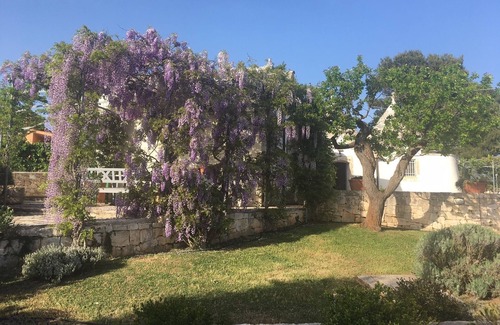 A few kilometers from the town, are trulli of the '700, completely renovated by masters trullari. Located on the edge of a forest. This makes them silent with fresh air and starry nights. The particularly well-kept garden is immersed in the green of the Mediterranean scrub with a gazebo of splendid gligths and one of vines, among lantas, roses and holm oak bushes. An orchard completes the property with fig trees, pear trees, apple trees, cherry trees, pomegranates and the wonderful oaks of the place (Quercus troiana). Exceptional are above all two authentic centenarian olive trees ('500). And the beauty of dazzling white and furnishings. The pool is in free convention, availability for guests is independent of our will