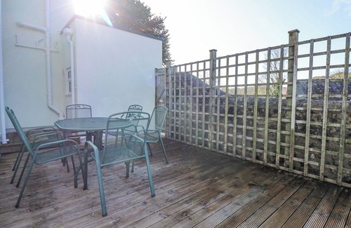 Amenities: Electric central heating. Electric oven and hob, fridge, freezer, dishwasher, washer/dryer, kettle, toaster. Smart TV and WiFi. Fuel and power inc. in rent. Bed linen and towels inc. in rent. Enclosed patio with decking. Two well-behaved dogs welcome. Sorry, no smoking. Roadside parking only. Shop and pub 0.1 miles, coast 0.2 miles, river 1.3 miles. Note: Steps down to kitchen. Note: Steps up to property.