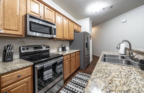 Treat yourself to a wonderful stay at this 4 bedroom 2 bath home in a stylish and safe neighborhood. This location is perfect for small and large groups alike. This house features four new bed sets high quality couches a 70 TV with Netflix access in the living room and a 55 TV in the master bedroom. Fast wifi a fully-stocked kitchen for all your cooking needs and the best new mattresses will ensure you have a comfortable and enjoyable stay!