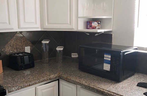 The fully equipped kitchen is a culinary haven, complete with modern appliances, ample counter space, a dishwasher, microwave, coffee maker, and all the essentials you need to prepare delicious meals. To get you started, we've also stocked the kitchen with some pantry staples, including: