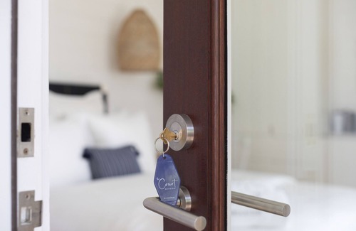 Your immaculately appointed room overlooks a central landscaped garden. Everything that you are looking for is close by. The beach is mere steps away through the Ruskin Street Pavilion (or the iconic Coleman Pavilion just one block away). So, too, is downtown Seaside with its restaurants and shops. The amphitheater is a very short walk away. The amphitheater is a very short walk away and Black Bear Bread Company is steps from your door. Your room comes with a queen-size bed with Peacock Alley linens. The coastal furnishings are from Serena & Lilly. If you are working remotely or just want to be able to check email, there is a custom built-in desk area. For refreshments, the room has a coffee station with a Nespresso maker, tumblers, and a small refrigerator. The large private bathroom has an ample vanity and a marble-tiled shower with a rainfall shower and wand. Two plush robes are available for use during your stay. Abundant storage allows you to unpack and relax with your things neatly stored. When it's time to head to the beach, you won't have far to go!